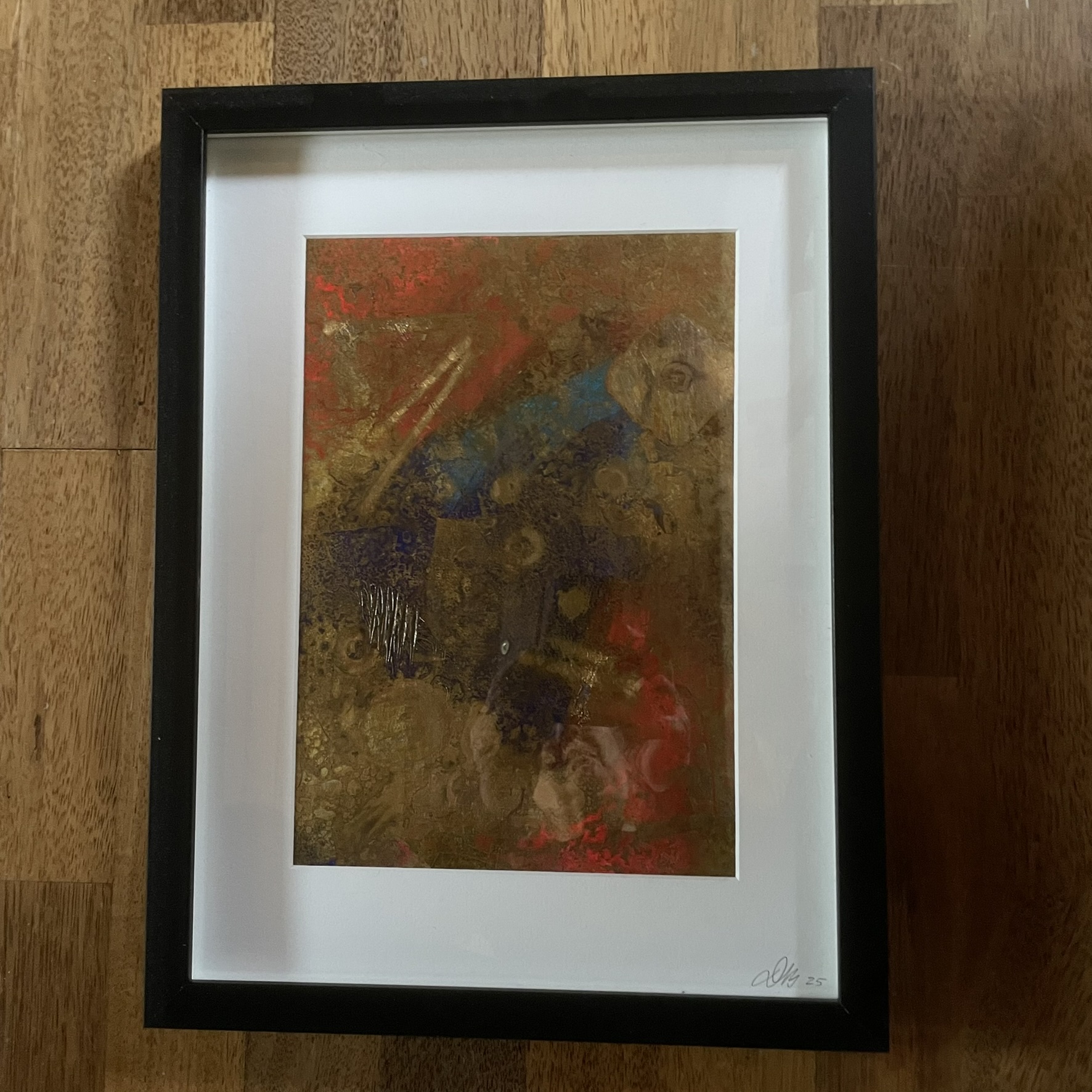 Forgyldning med slagmetal og ætsning på akryl i passepartout